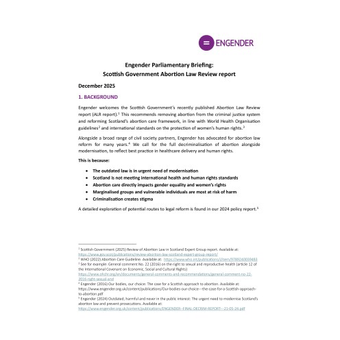 Engender Parliamentary Briefing: Scottish Government Abortion Law Review report